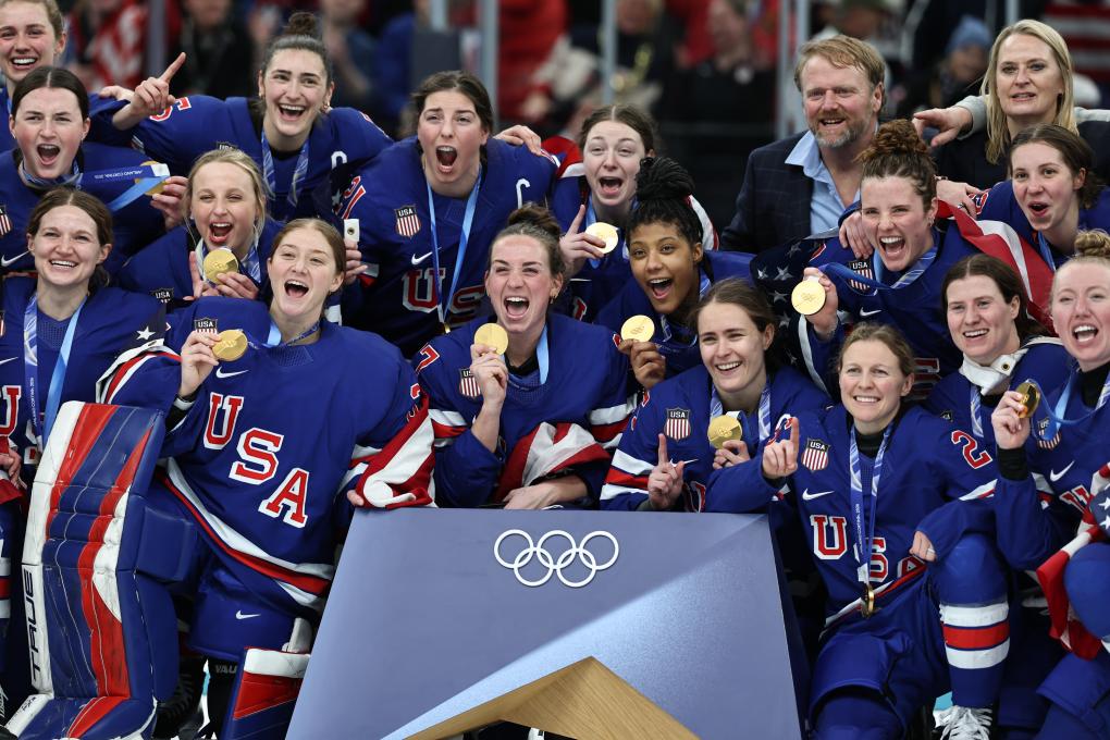 Players of the United States celebrate victory after the ice hockey women's gold medal game between the United States and Canada at the Milan-Cortina 2026 Olympic Winter Games in Milan, Italy, Feb. 19, 2026. (Xinhua/Wang Kaiyan) Players of the United States celebrate with the gold medals after the awarding ceremony for the ice hockey women's gold medal game between the United States and Canada at the Milan-Cortina 2026 Olympic Winter Games in Milan, Italy, Feb. 19, 2026. (Xinhua/Zhang Haofu) Gold medalists players of the United States pose during the awarding ceremony after the ice hockey women's gold medal game between the United States and Canada at the Milan-Cortina 2026 Olympic Winter Games in Milan, Italy, Feb. 19, 2026. (Xinhua/Wang Kaiyan)Gold medalist Alysa Liu of the United States bites her medal during the awarding ceremony of the figure skating women single skating event at the Milan-Cortina 2026 Olympic Winter Games in Milan, Italy, Feb. 19, 2026. (Xinhua/Li Ming)