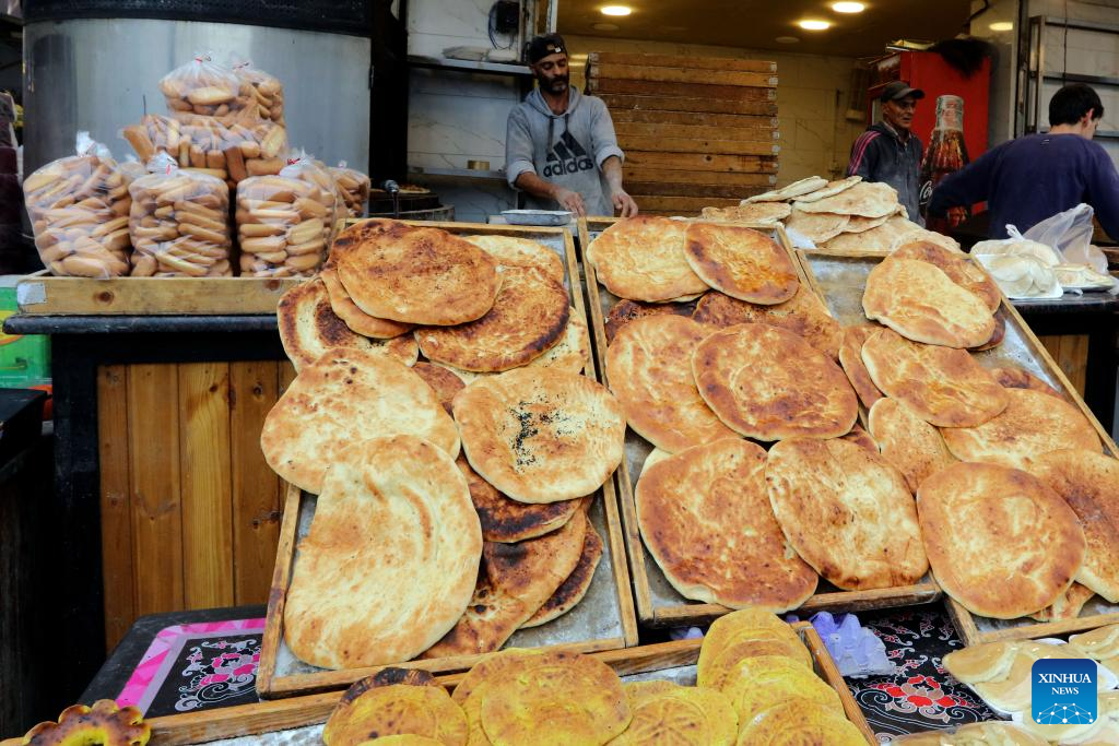Photo taken on on Feb. 19, 2026 shows a bread stall at a market during Ramadan in Amman, Jordan. (Photo by Mohammad Abu Ghosh/Xinhua)
