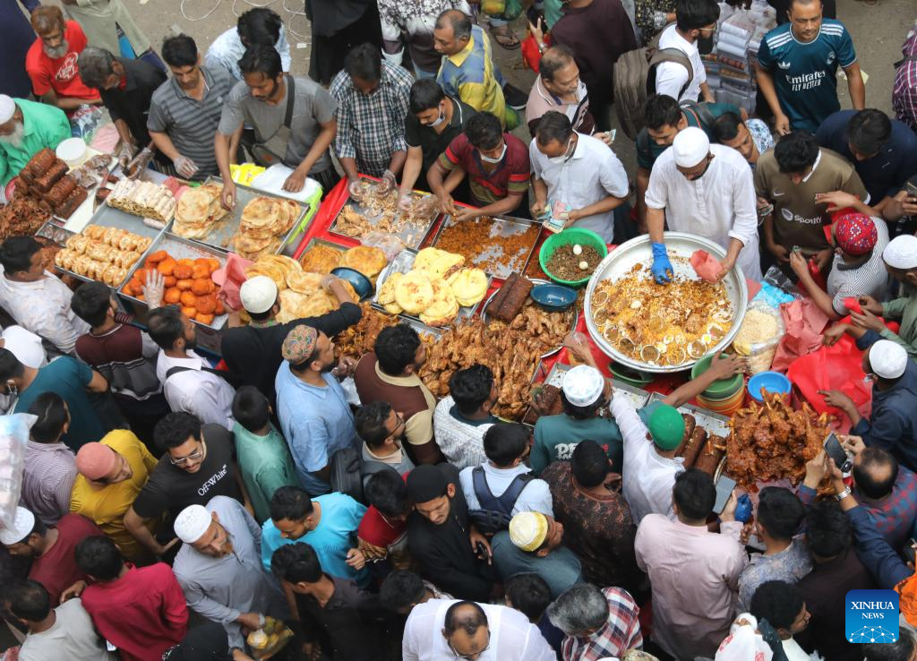 People buy food at a traditional market during Ramadan in Dhaka, Bangladesh, Feb. 19, 2026. (Photo by Habibur Rahman/Xinhua)