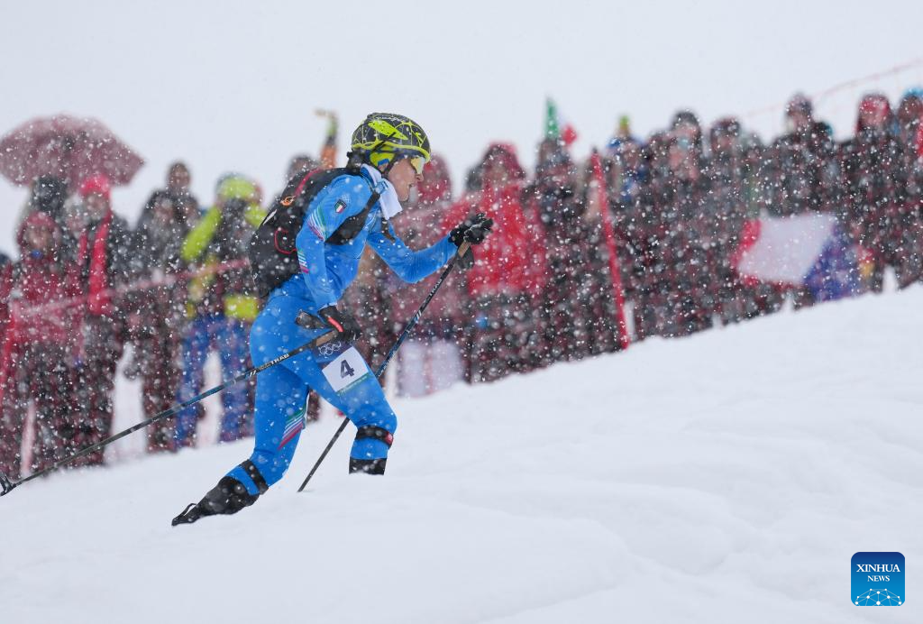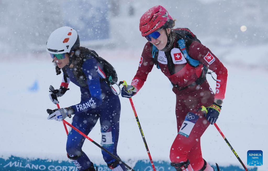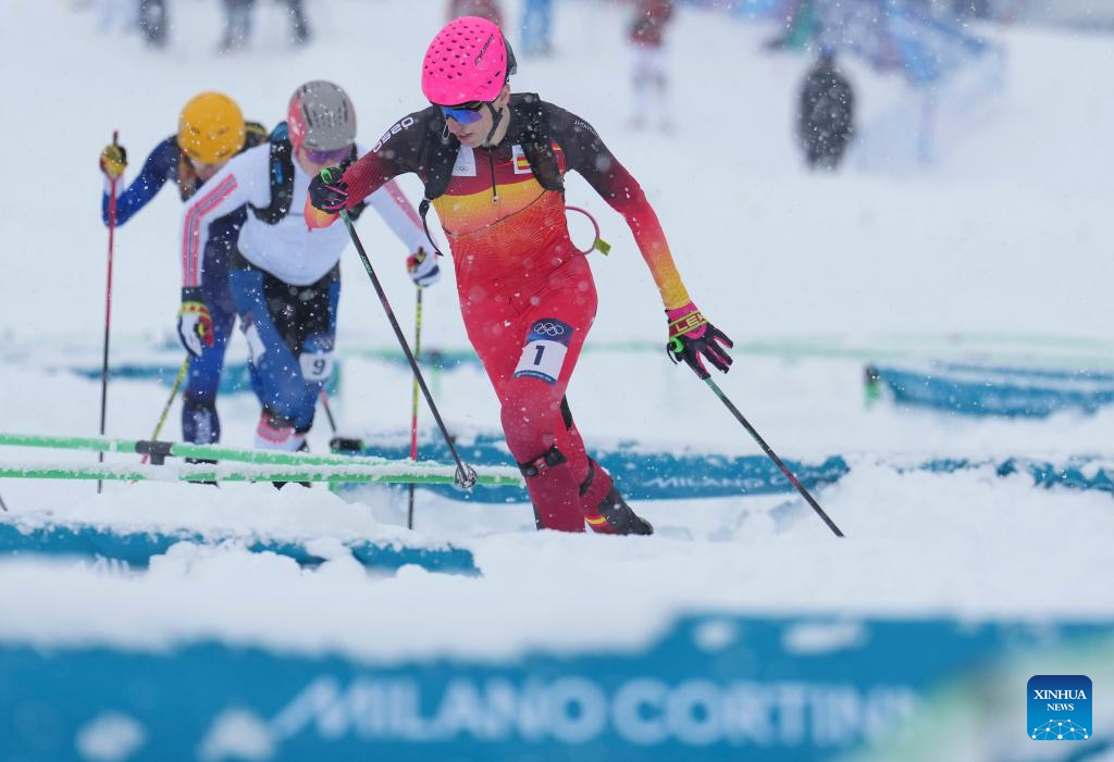 BORMIO, Italy, Feb. 19 (Xinhua) -- Oriol Cardona Coll of Spain and Switzerland's Marianne Fatton captured the first-ever Olympic gold medals in ski mountaineering on Thursday, as the sport made its debut amidst blizzard conditions at the Milan-Cortina 2026 Olympic Winter Games.