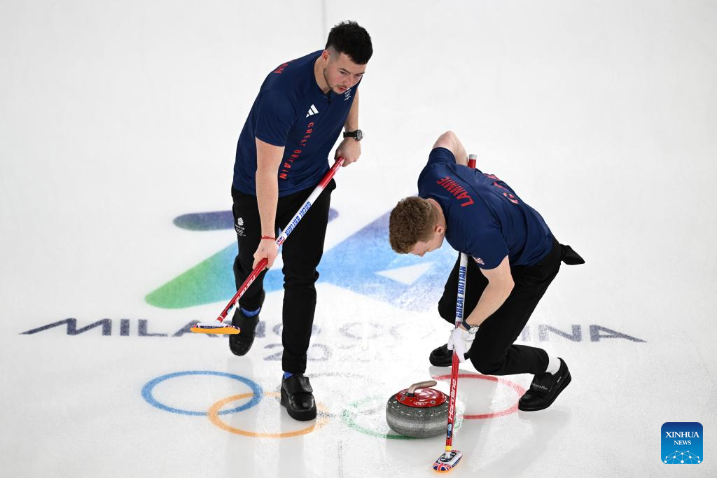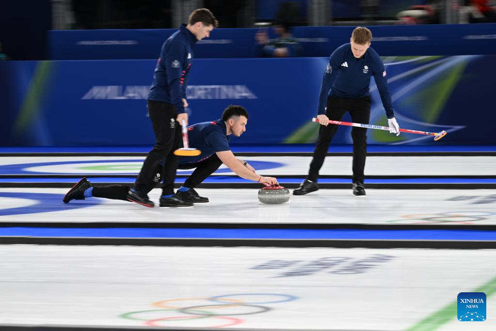 CORTINA D'AMPEZZO, Italy, Feb. 19 (Xinhua) -- Britain, the last team to reach the semifinals, rallied from behind to stun round-robin leader Switzerland 8-5 and advance to the men's curling final at the Milan-Cortina Winter Olympics on Thursday.