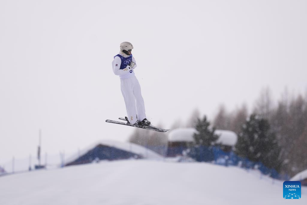 Wang Xindi of China competes during the freestyle skiing men's aerials final 2 at the Milan-Cortina 2026 Olympic Winter Games in Livigno, Italy, Feb. 20, 2026. (Xinhua/Hu Chao)