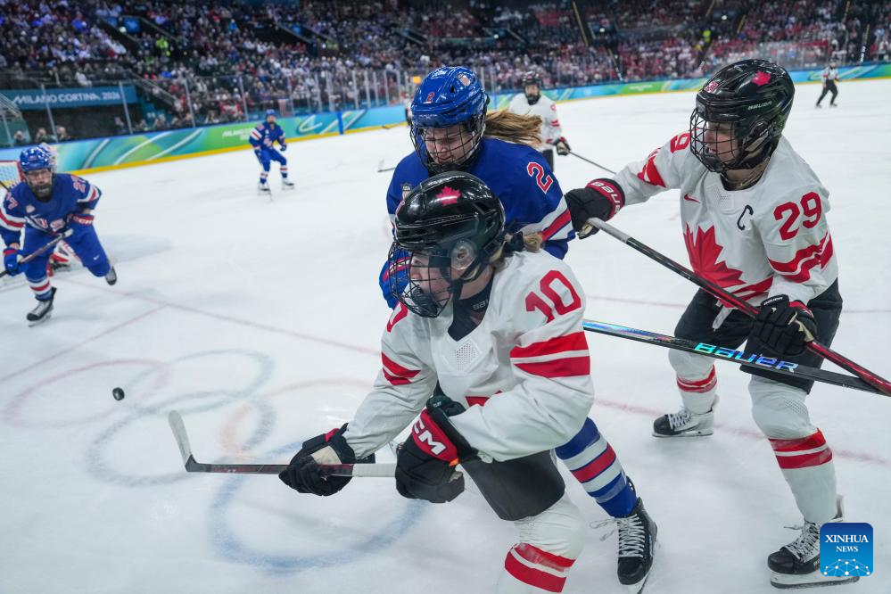 MILAN, Feb. 19 (Xinhua) -- The United States captured its third Olympic women's ice hockey gold medal on Thursday, rallying from behind to defeat archrival Canada 2-1 in overtime in the Milan-Cortina 2026 final.