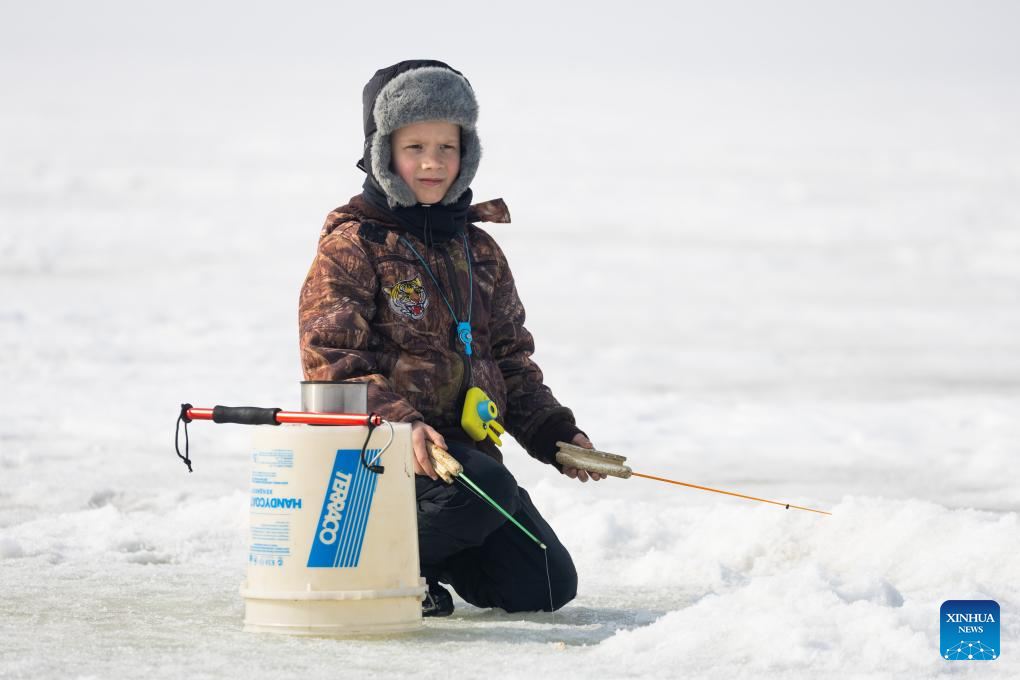 A boy takes part in an ice fishing competition in Vladivostok, Russia, Feb. 21, 2026. (Photo by Andrey Matveenko/Xinhua)