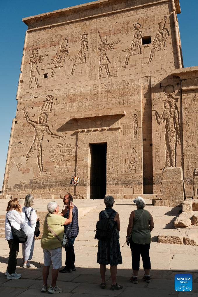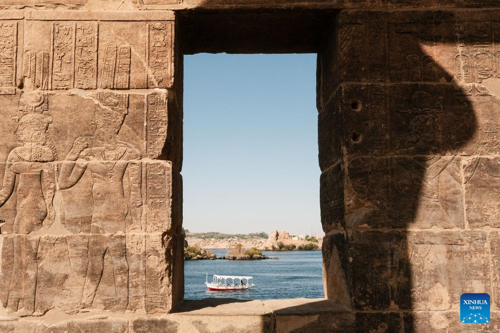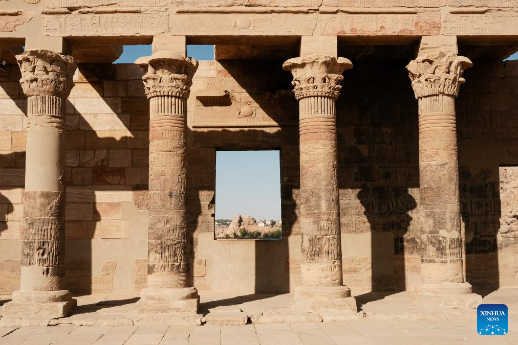 The temples were submerged because of the construction of Aswan Low Dam in early 1900s and the later construction of Aswan High Dam in the 1960s. And it was relocated, piece by piece, from Philae Island to the higher Agilkia Island decades ago as part of a UNESCO-led campaign to save it from flooding. (Xinhua/Xin Mengchen)