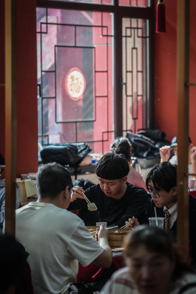 Diners enjoy dumplings at Laobian Dumplings, a restaurant chain, in Shenyang, northeast China's Liaoning Province, Feb. 21, 2026. (Xinhua/Pan Yulong)