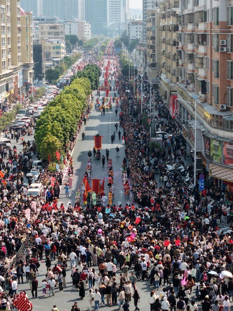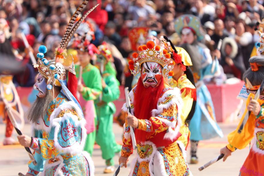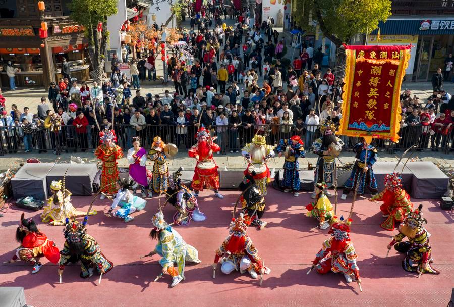 Artists perform during a Yingge dance carnival event celebrating the Spring Festival in Chaoyang District of Shantou, south China's Guangdong Province, Feb. 21, 2026. (Photo by Yao Jun/Xinhua)