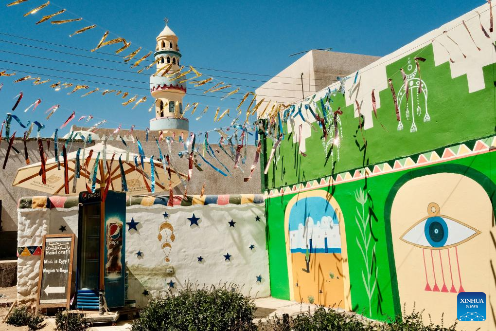 This photo taken on Feb. 20, 2026 shows a view of a Nubian village in Aswan, Egypt. Aswan, a southern Egyptian city on upper Nile River, is one of the country's famous tourist destinations. It boasts rich cultural and natural tourism resources, attracting visitors from around the world every year. (Xinhua/Xin Mengchen)