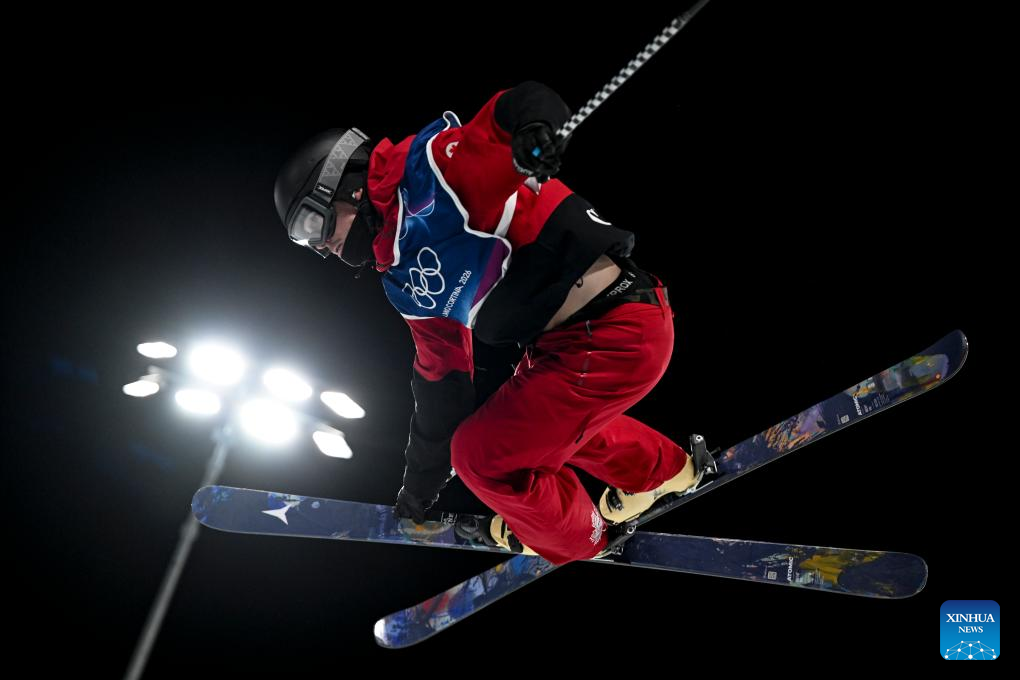 Brendan Mackay of Canada competes during the freestyle skiing men's freeski halfpipe final at the Milan-Cortina 2026 Olympic Winter Games in Livigno, Italy, Feb. 20, 2026. (Xinhua/Xia Yifang)