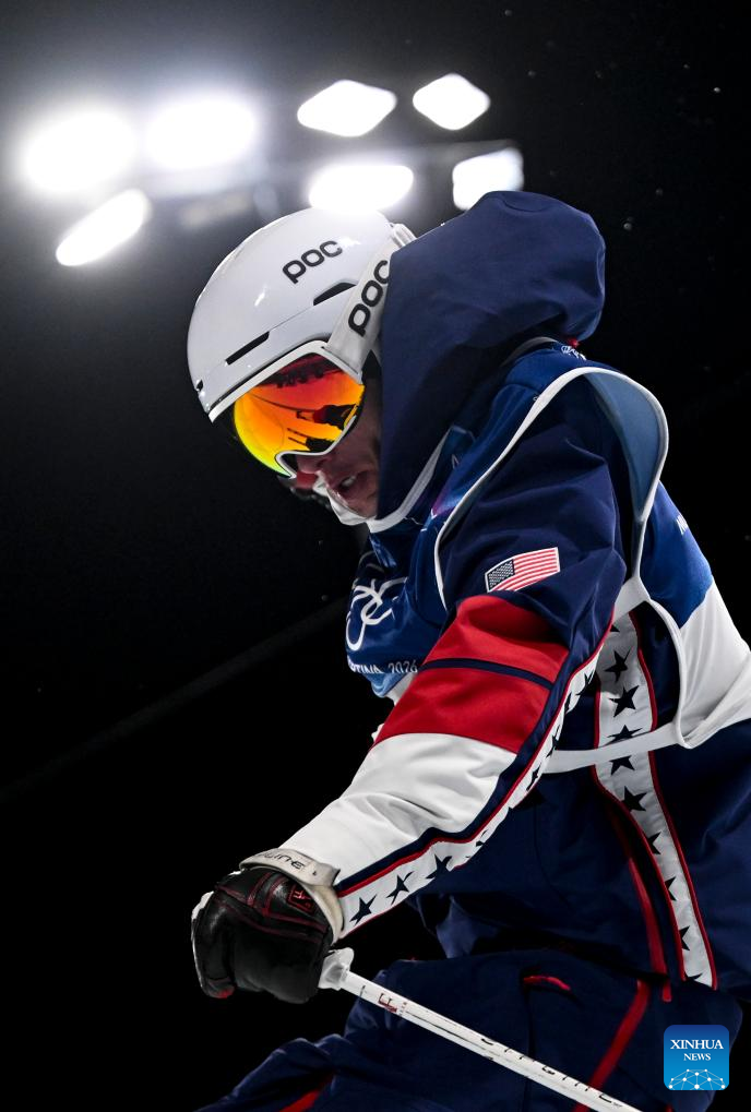 Alex Ferreira of the United States competes during the freestyle skiing men's freeski halfpipe final at the Milan-Cortina 2026 Olympic Winter Games in Livigno, Italy, Feb. 20, 2026. (Xinhua/Xia Yifang)