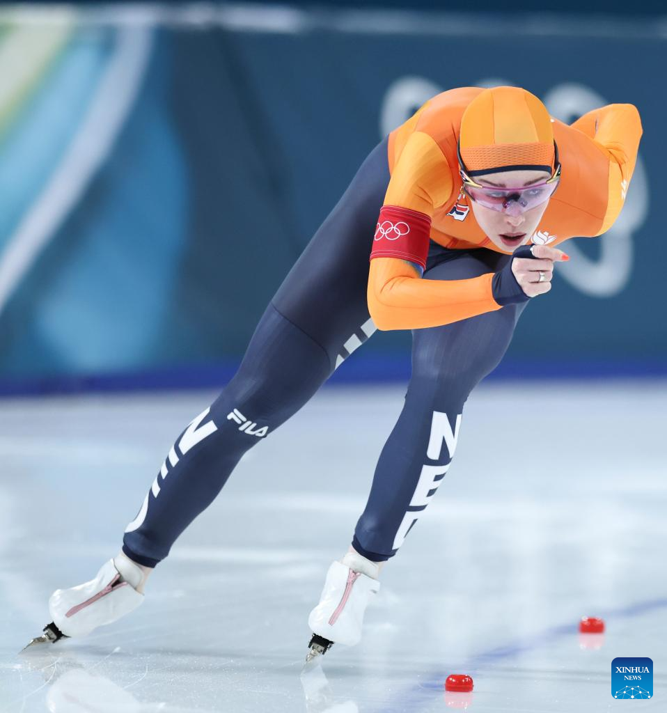 Antoinette Rijpma-de Jong of the Netherlands competes during the speed skating women's 1500m event at the Milan-Cortina 2026 Olympic Winter Games in Milan, Italy, Feb. 20, 2026. (Xinhua/Li Jing)