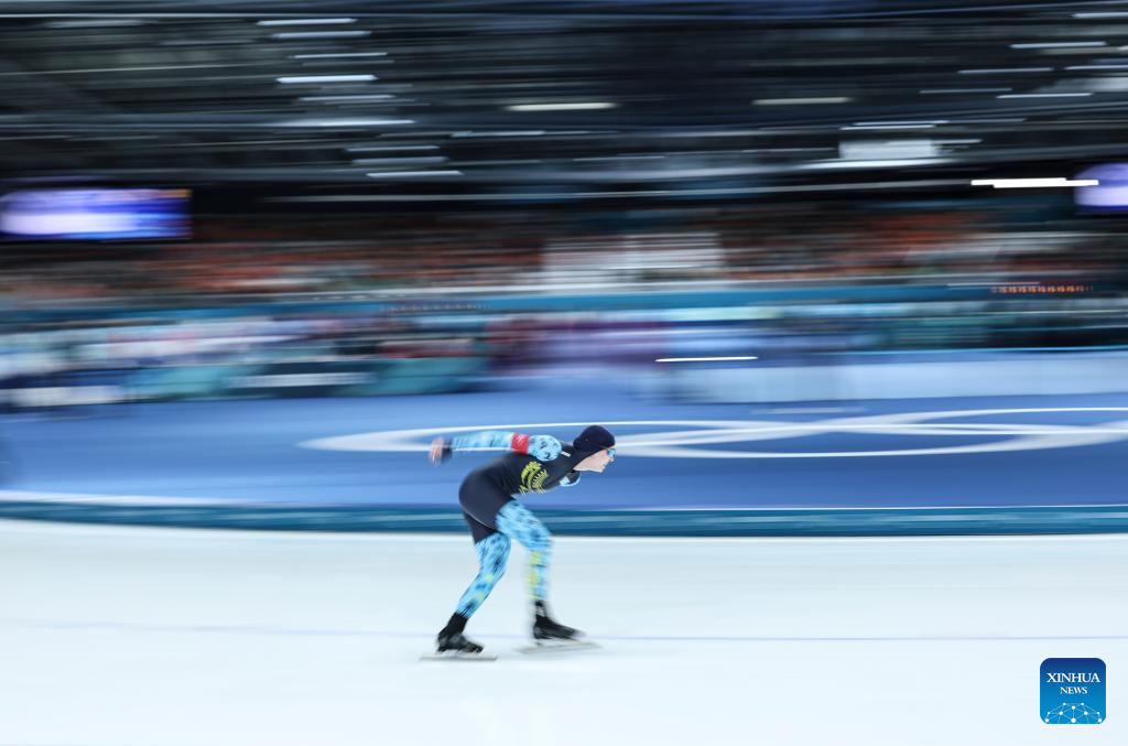 Li Jiaxuan of China competes during the speed skating women's 1500m event at the Milan-Cortina 2026 Olympic Winter Games in Milan, Italy, Feb. 20, 2026. (Xinhua/Li Jing)