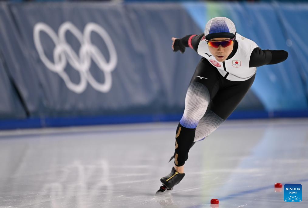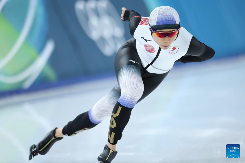 Takagi Miho of Japan competes during the speed skating women's 1500m event at the Milan-Cortina 2026 Olympic Winter Games in Milan, Italy, Feb. 20, 2026. (Xinhua/Li Jing)