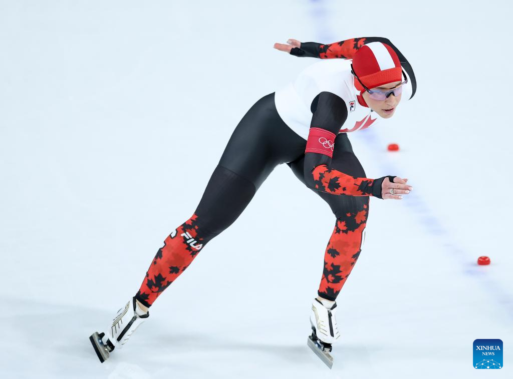Valerie Maltais of Canada competes during the speed skating women's 1500m event at the Milan-Cortina 2026 Olympic Winter Games in Milan, Italy, Feb. 20, 2026. (Xinhua/Wu Wei)