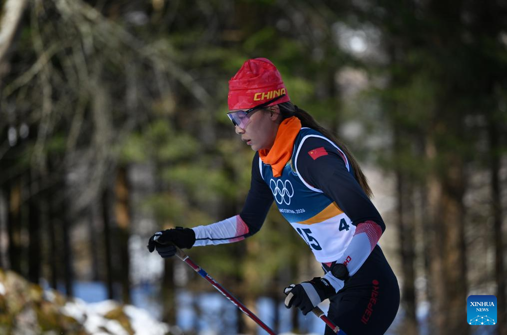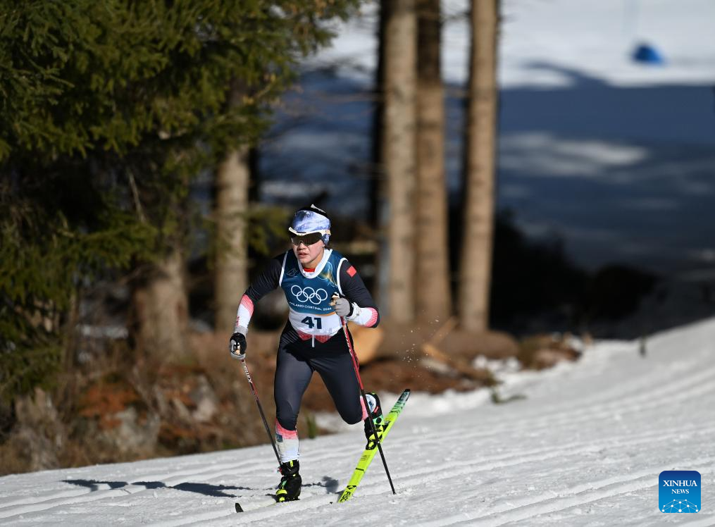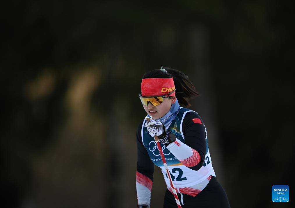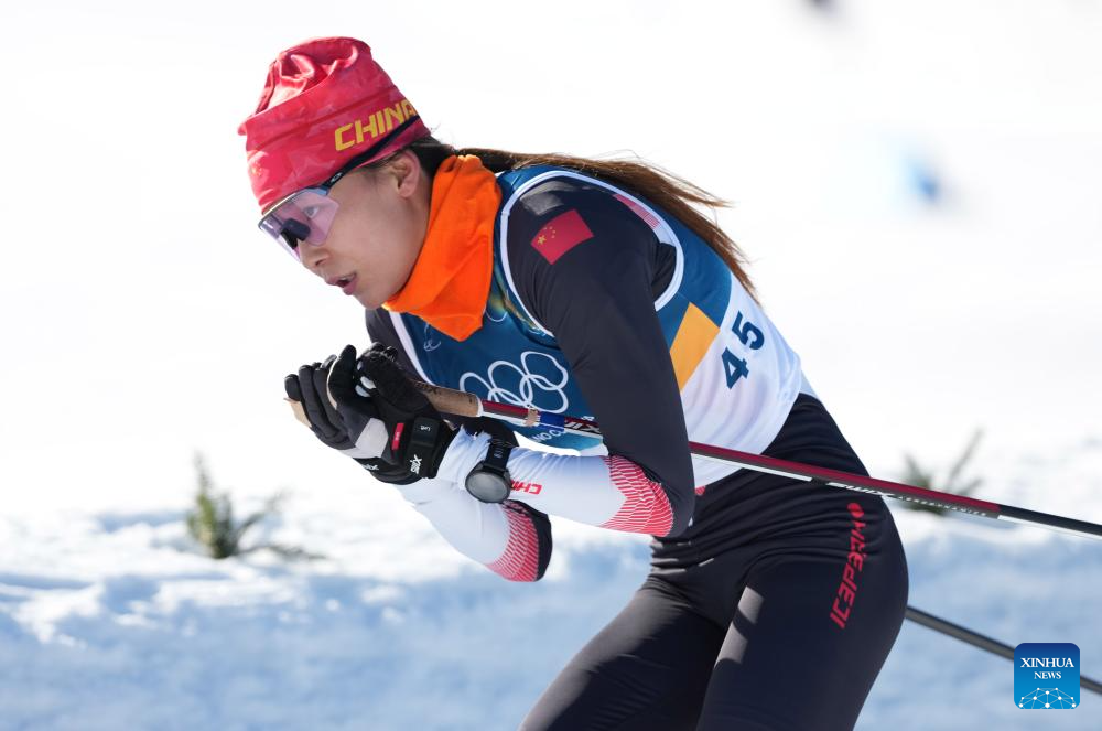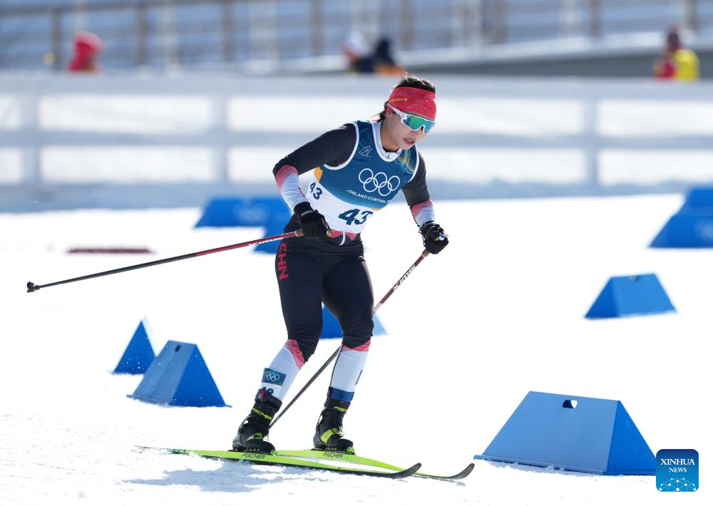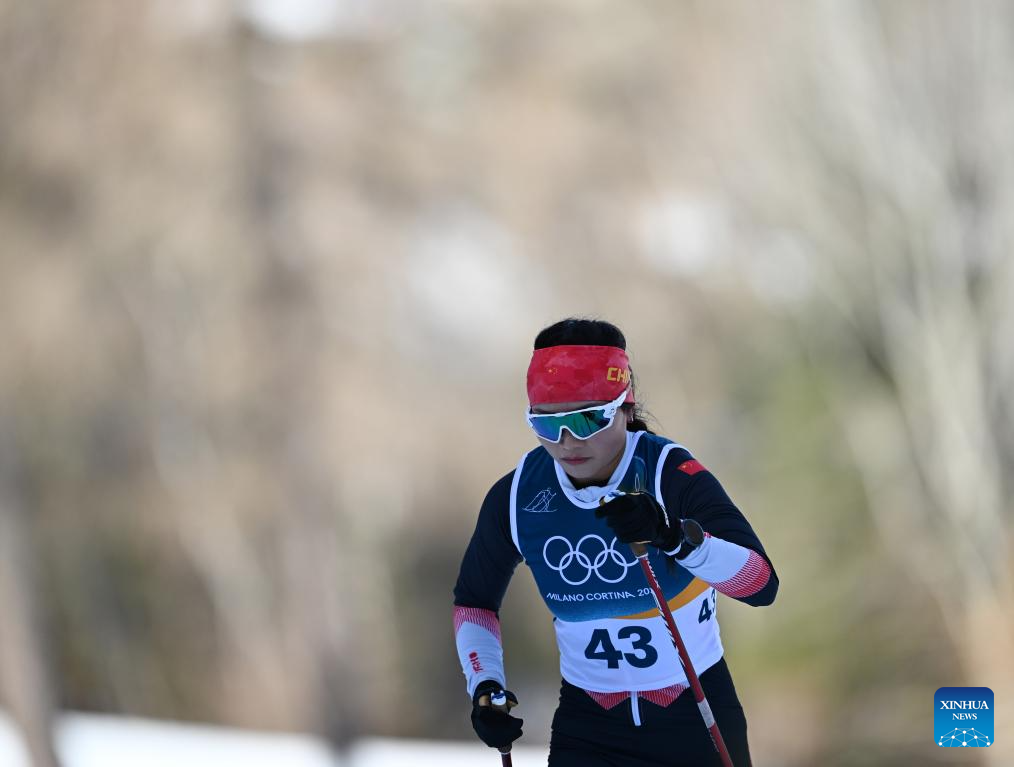 Wang Yundi of China competes during the cross-country skiing women's 50km mass start classic match at the Milan-Cortina 2026 Olympic Winter Games in Tesero, Italy, Feb. 22, 2026. (Xinhua/Meng Yongmin)