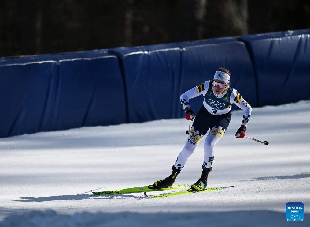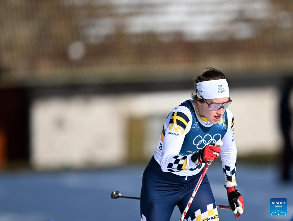 Ebba Andersson of Sweden competes during the cross-country skiing women's 50km mass start classic match at the Milan-Cortina 2026 Olympic Winter Games in Tesero, Italy, Feb. 22, 2026. (Xinhua/He Canling)