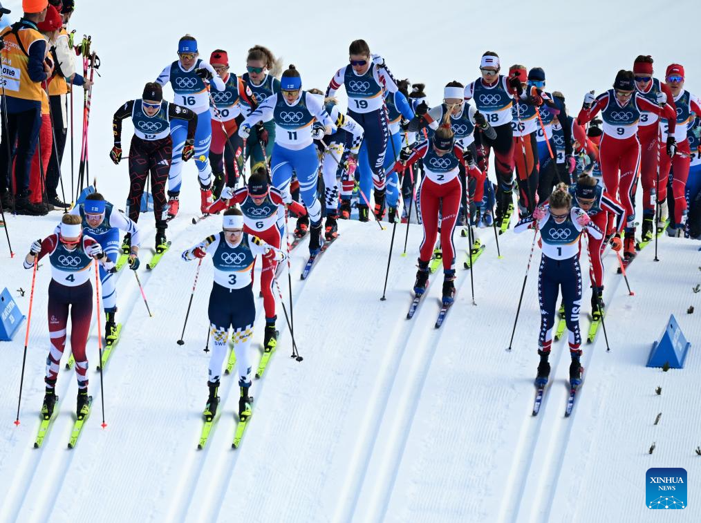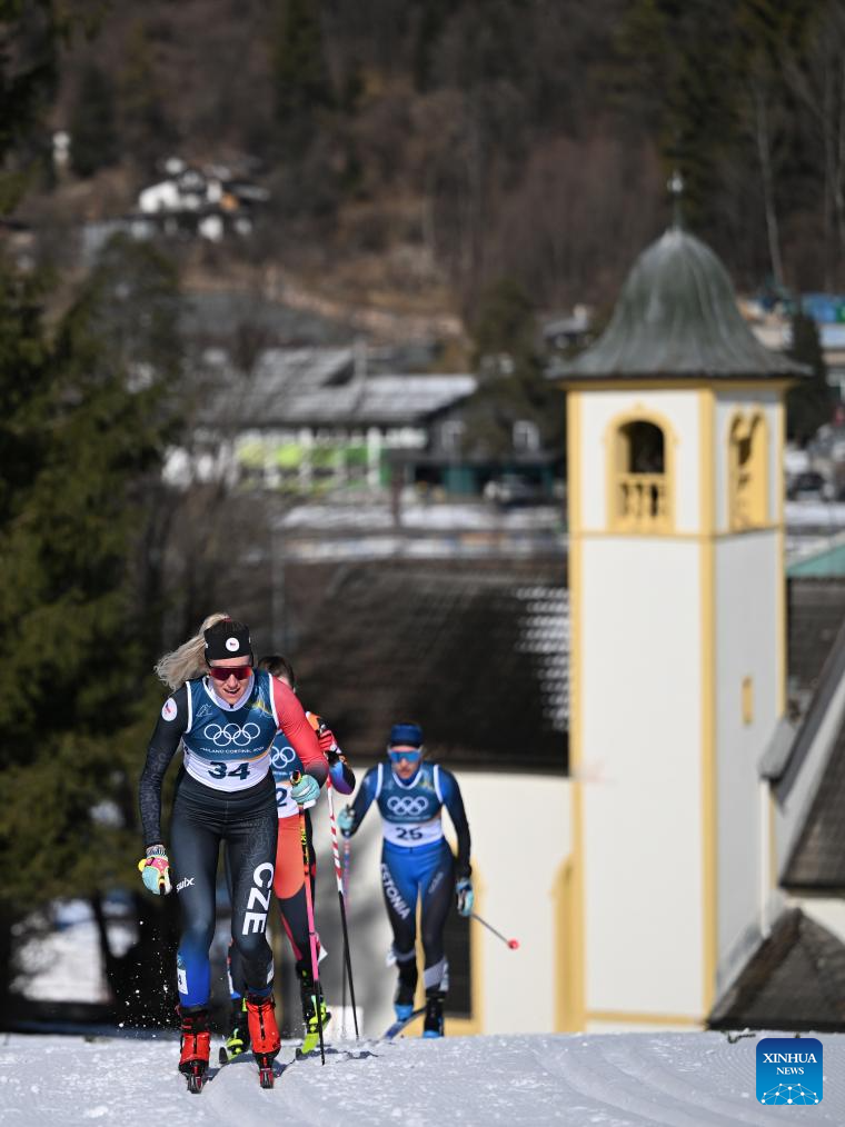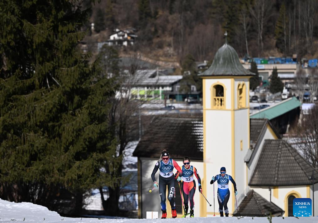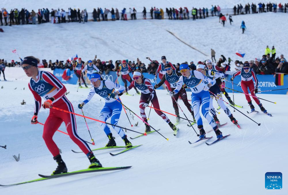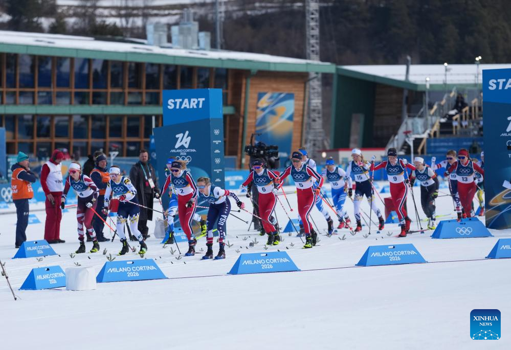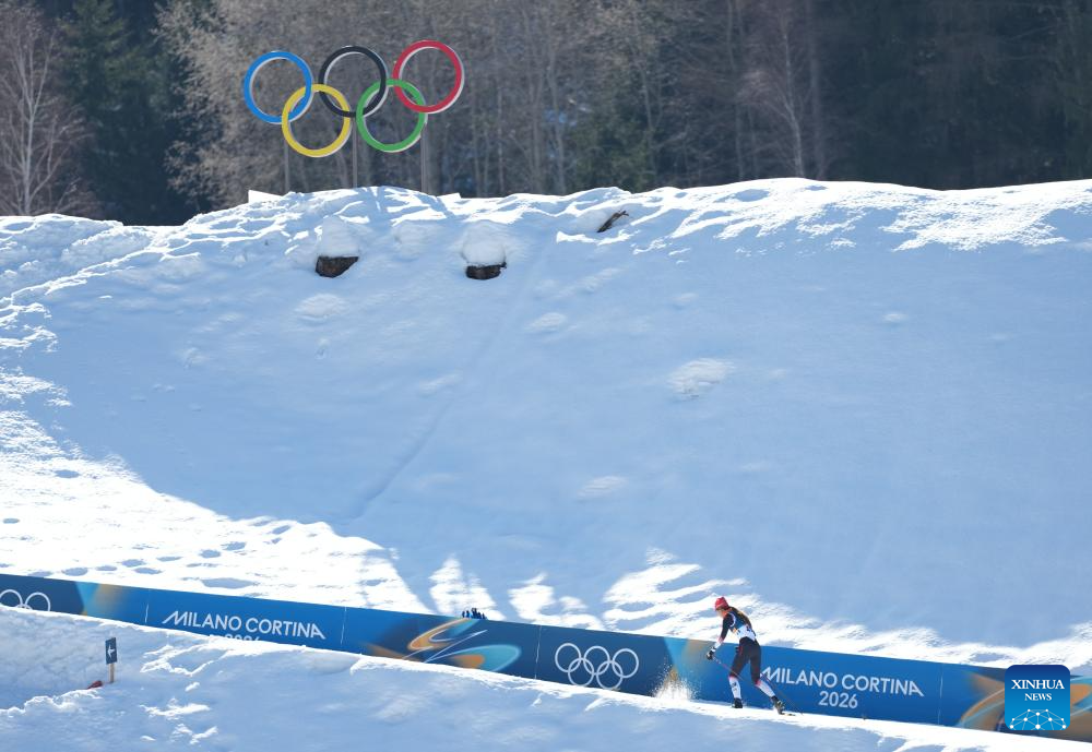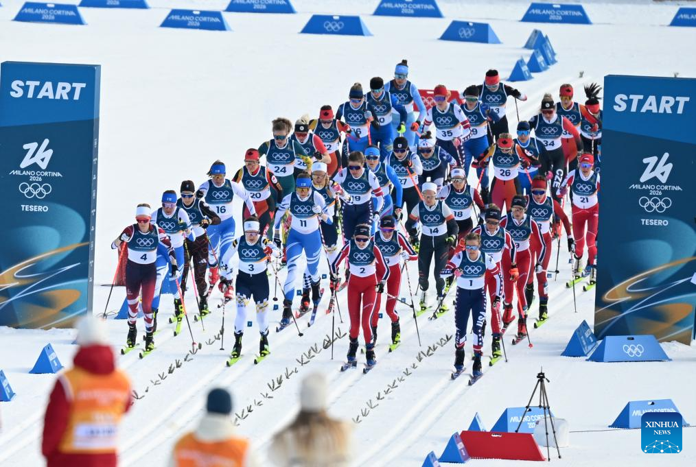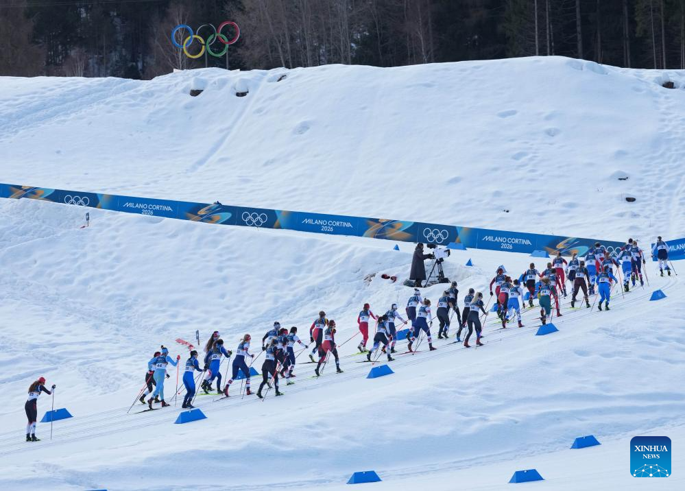 Athletes compete during the cross-country skiing women's 50km mass start classic match at the Milan-Cortina 2026 Olympic Winter Games in Tesero, Italy, Feb. 22, 2026. (Xinhua/Meng Yongmin)