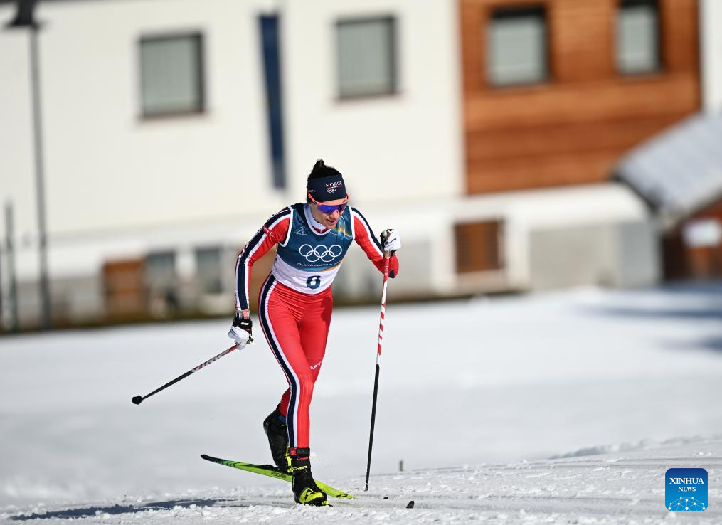 Heidi Weng of Norway competes during the cross-country skiing women's 50km mass start classic match at the Milan-Cortina 2026 Olympic Winter Games in Tesero, Italy, Feb. 22, 2026. (Xinhua/He Canling)