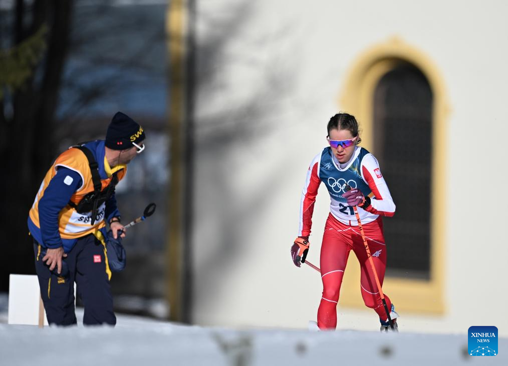 Eliza Rucka-Michalek of Poland competes during the cross-country skiing women's 50km mass start classic match at the Milan-Cortina 2026 Olympic Winter Games in Tesero, Italy, Feb. 22, 2026. (Xinhua/He Canling)