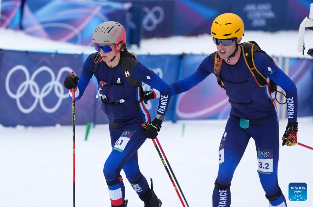 BORMIO, Italy, Feb. 21 (Xinhua) -- France's Emily Harrop and Thibault Anselmet powered to mixed relay gold on Saturday, bringing the curtain down on ski mountaineering's Olympic debut at the Milan-Cortina Winter Games.