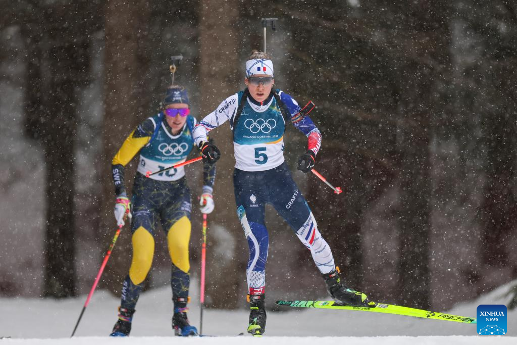 ANTERSELVA, Italy, Feb. 21 (Xinhua) -- The biathlon competitions at the Milan-Cortina Winter Olympics concluded on Saturday with France's Oceane Michelon claiming gold in the women's 12.5km mass start, while her teammate Julia Simon took silver and Czech biathlete Tereza Vobornikova secured bronze.