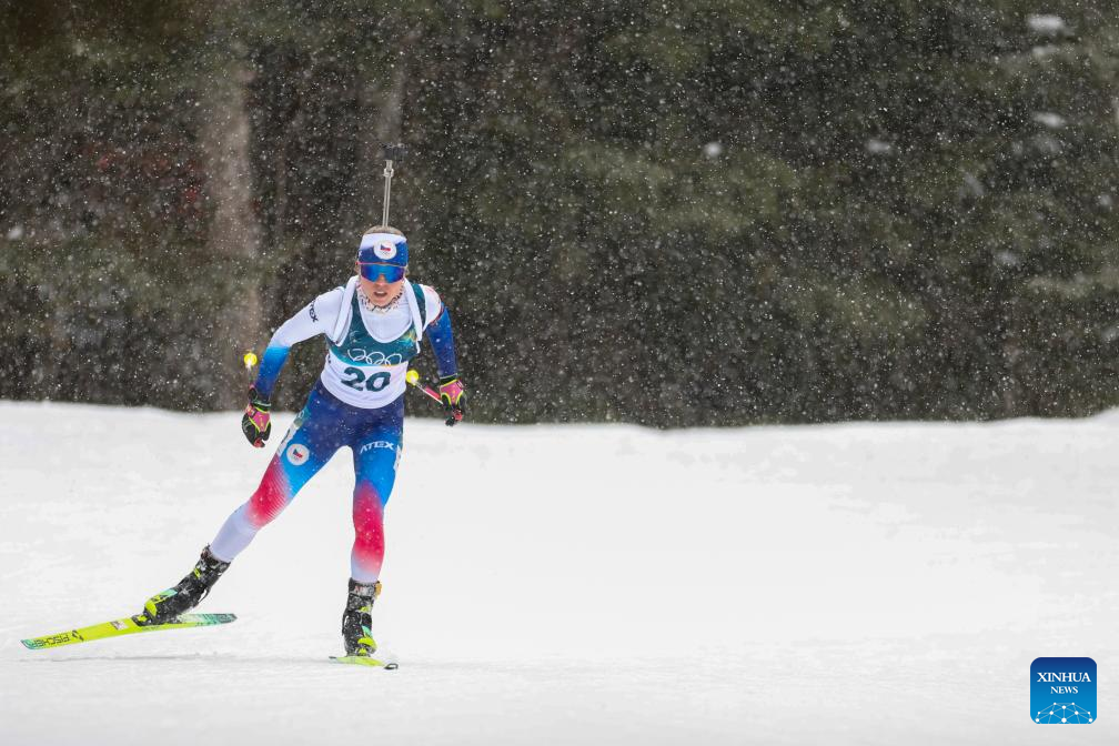 Tereza Vobornikova of the Czech Republic competes during the biathlon women's 12.5km mass start event at the 2026 Milan-Cortina Winter Olympics in Anterselva, Italy, Feb. 21, 2026. (Xinhua/Zhang Tao)