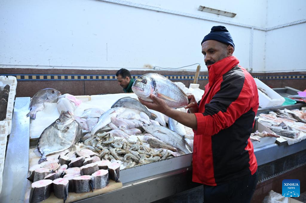 A vendor sells fish at a market during the Muslim holy month of Ramadan in Rabat, Morocco, on Feb. 21, 2026. (Photo by Aissa/Xinhua)
