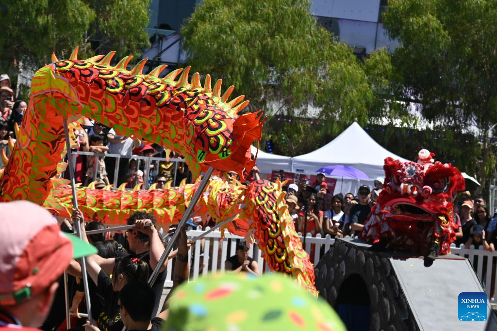 A lion and dragon dance is staged during a celebration of the Chinese New Year in Melbourne, Australia, Feb. 21, 2026. (Xinhua/Xu Haijing)