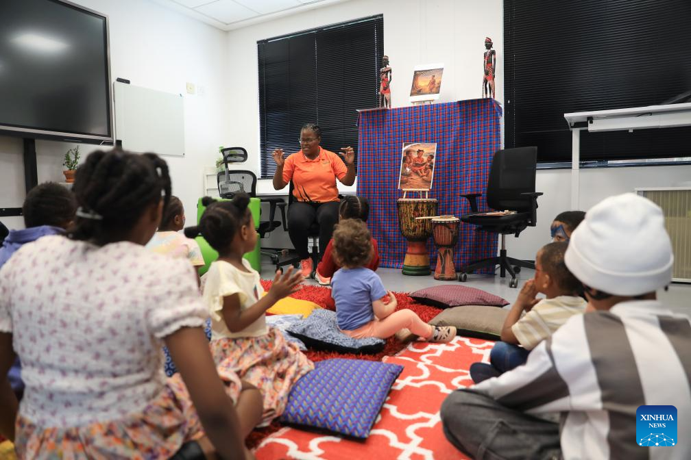 Children participate in a French storytelling session in Johannesburg, South Africa, Feb. 21, 2026. In 1999, UNESCO declared Feb. 21 as International Mother Language Day to promote linguistic and cultural diversity and multilingualism. (Xinhua/Chen Wei)