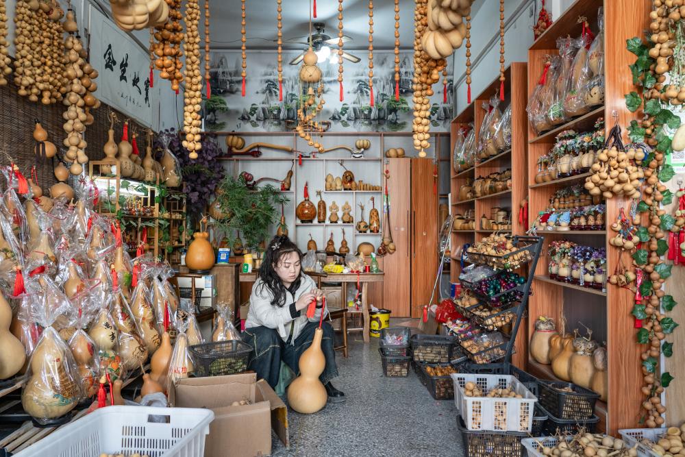 The enthusiasm of young hometown returnees was boosted by strong policy support, too. In 2024, Tangyi invited three national top-tier artisans to offer training courses in calabash crafting. A college student entrepreneurship incubator was also established last year to provide training in farming and carving techniques, enabling young people to participate freely.