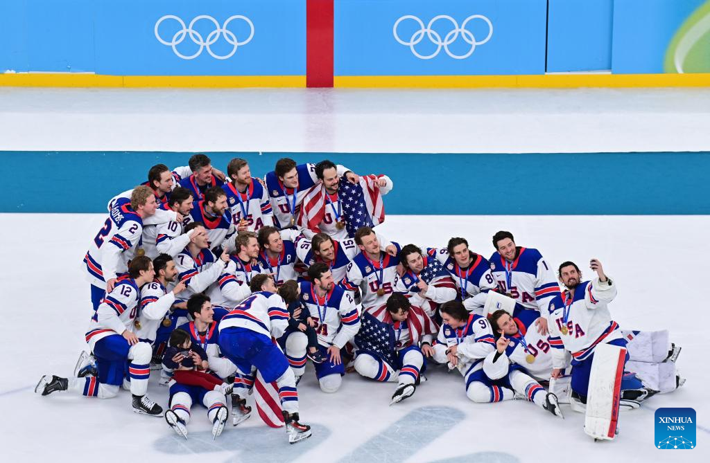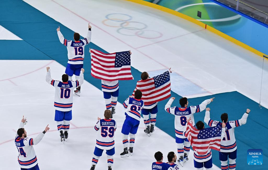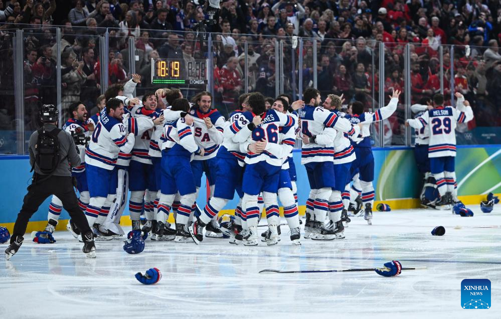 MILAN, Feb. 22 (Xinhua) -- The United States captured its third Olympic men's ice hockey gold medal, and first in 46 years, by edging Canada 2-1 in overtime in a thrilling final at the Milan-Cortina Winter Olympics on Sunday.