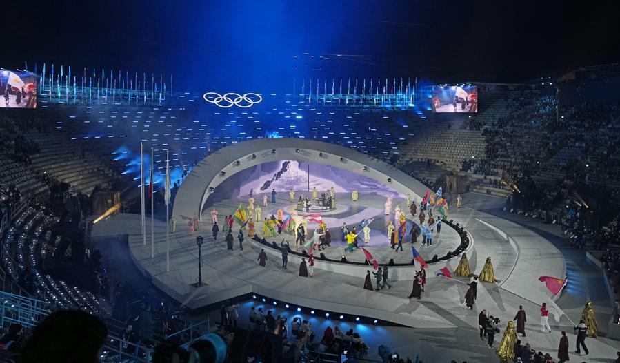 ↑This photo taken on Feb. 22, 2026 shows the closing ceremony of the Milan-Cortina 2026 Olympic Winter Games at Verona Olympic Arena in Verona, Italy. (Xinhua/Xue Yuge)