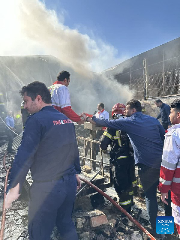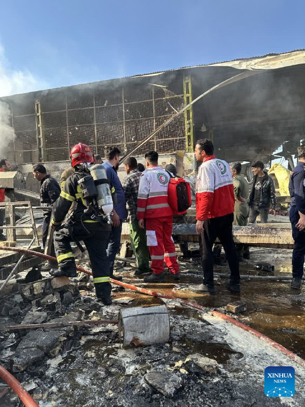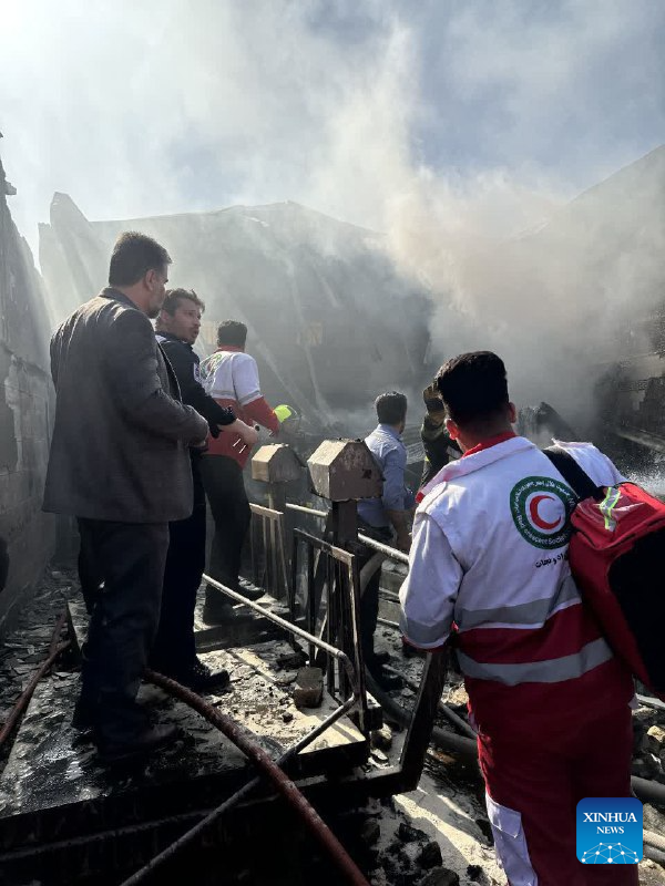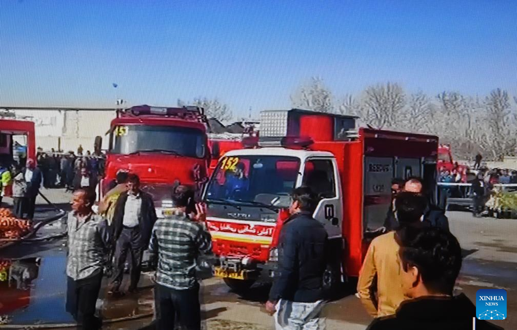Rescuers work at the site of a helicopter crash in the central province of Isfahan, Iran, Feb. 24, 2026. Four people were killed when an Iranian army helicopter crashed Tuesday morning into a fruit and vegetable market in the central province of Isfahan, the semi-official Fars news agency reported. (Xinhua)