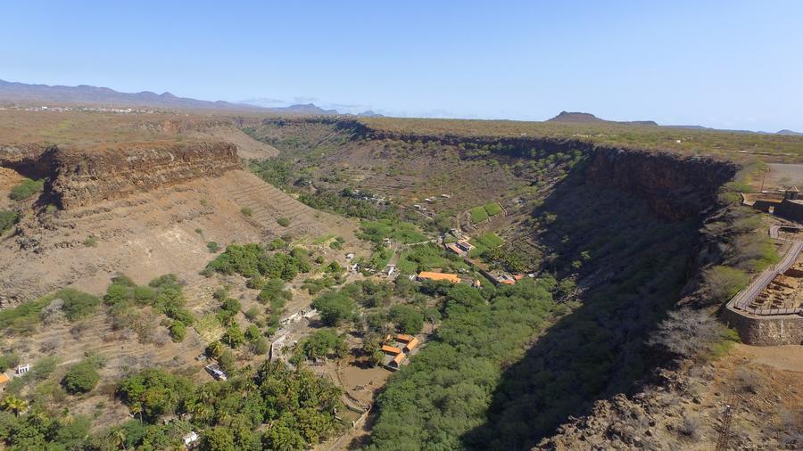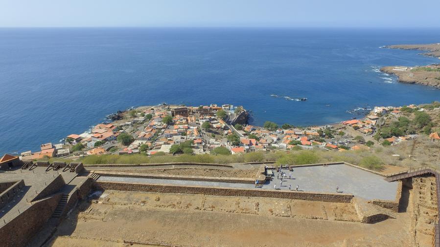 An aerial drone photo taken on Feb. 7, 2026 shows a view of Cidade Velha, Cape Verde. (Photo by Elton Monteiro/Xinhua)