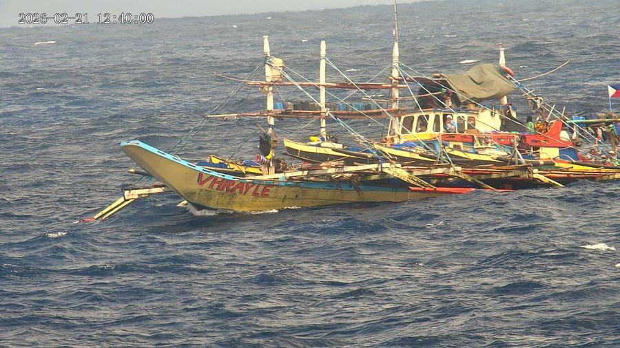 This photo taken on Feb. 21, 2026 shows a Philippine vessel illegally entering the territorial waters of China's Huangyan Dao in the South China Sea, with several crew members suspected of filming Chinese coast guard vessels. (Xinhua)This photo taken on Feb. 21, 2026 shows a Philippine vessel illegally entering the territorial waters of China's Huangyan Dao in the South China Sea, with one crew member suspected of filming Chinese coast guard vessels. (Xinhua)The China Coast Guard vessel Hebao lawfully expels a Philippine ship in the territorial waters of China's Huangyan Dao, the South China Sea, Feb. 21, 2026. (Xinhua)■