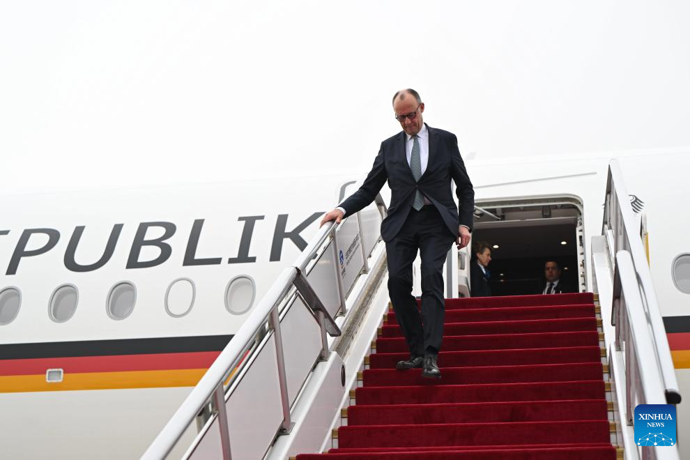 BEIJING, Feb. 25 (Xinhua) -- German Chancellor Friedrich Merz arrived in Beijing on Wednesday for an official visit to China through Thursday.