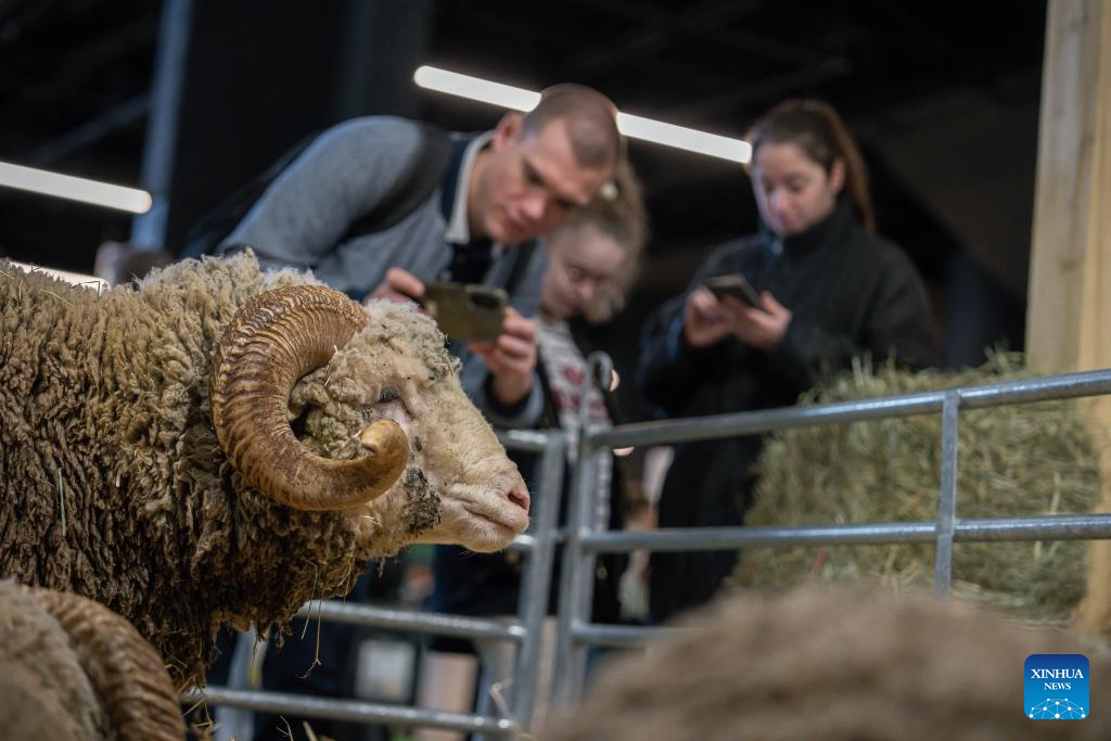 Photo taken on Feb. 24, 2026 shows a sheep at the 62nd International Agricultural Fair in Paris, France. The fair will last until March 1. (Photo by Aurelien Morissard/Xinhua)