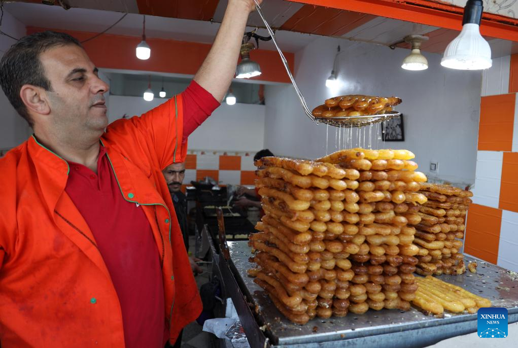 A man makes traditional dessert known as Zalabia which is popular during Ramadan, in Boufarik, Algeria, Feb. 24, 2026. (Xinhua)