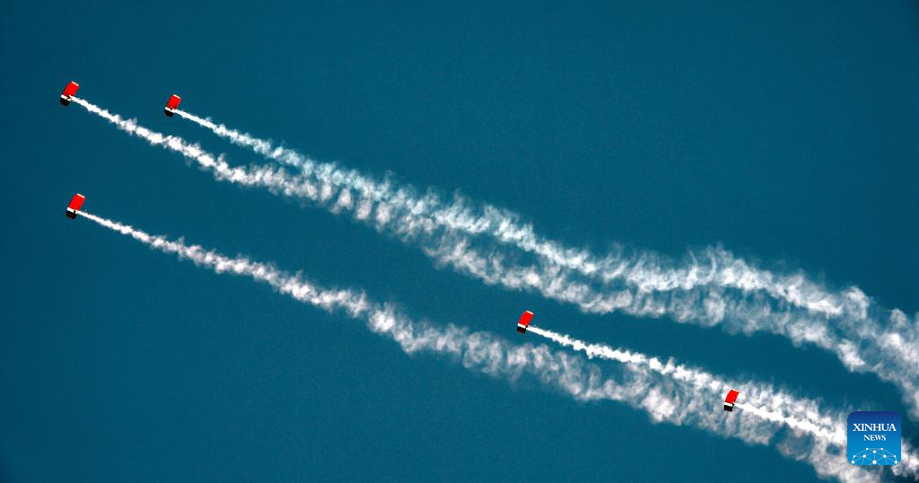 Skydivers perform over Kuwait City in celebration of Kuwait's National Day and Liberation Day, in Kuwait, Feb. 25, 2026. (Photo by Asad/Xinhua)