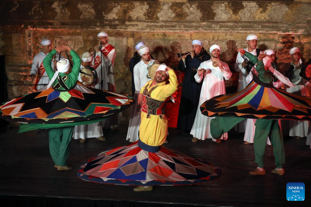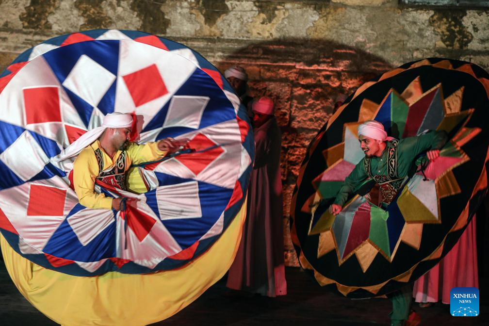 Dancers perform Tanoura, a traditional Egyptian folk dance, during the holy month of Ramadan at the Sultan Al-Ghuri complex in Cairo, Egypt, Feb. 25, 2026. (Xinhua/Ahmed Gomaa)