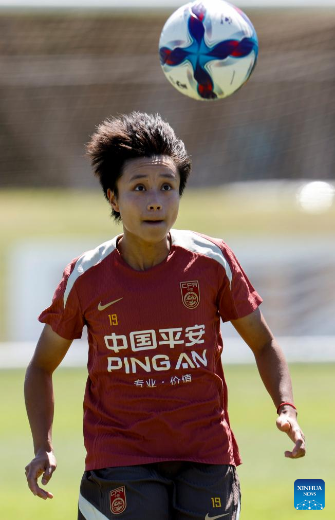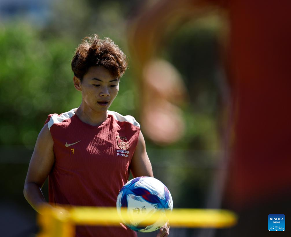 Wu Haiyan of China attends a training session for the upcoming AFC Women's Asian Cup, in Newcastle, Australia, Feb. 26, 2026. (Photo by Wang Shuang/Xinhua)