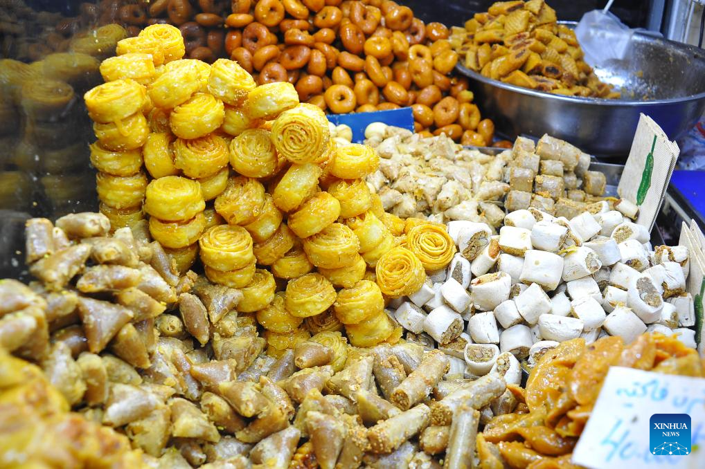 Photo taken on Feb. 26, 2026 shows desserts at a market during the holy month of Ramadan in Tunis, Tunisia. (Photo by Adel Ezzine/Xinhua)