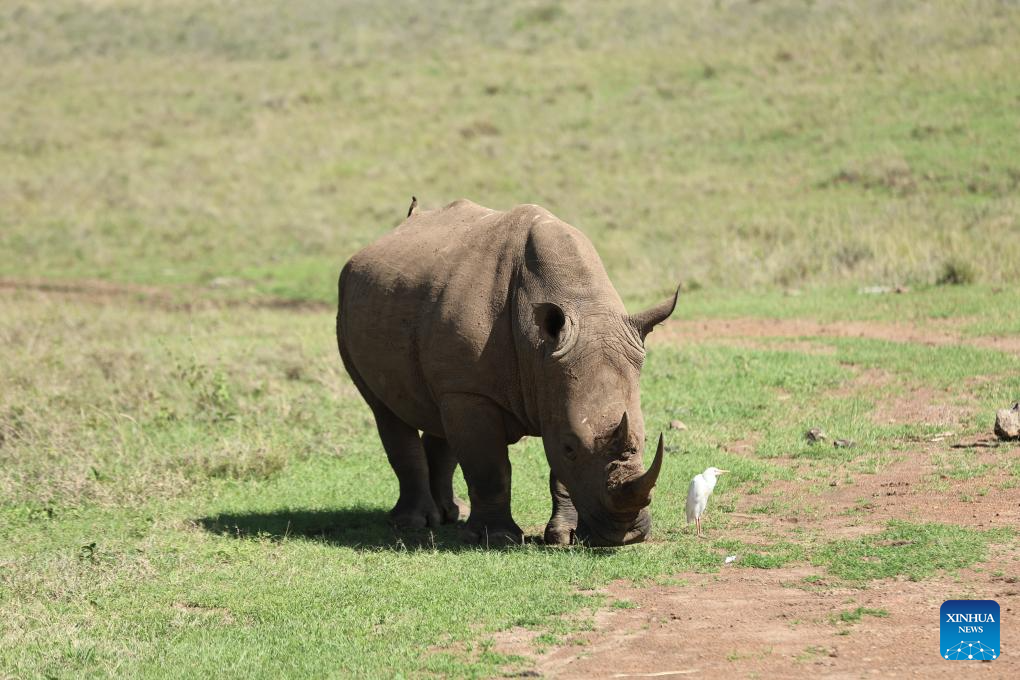 This photo taken on Feb. 26, 2026 shows a rhino at the Nairobi National Park in Kenya. The Nairobi National Park is one of the few capital-based reserves in the world. Spanning 117 square kilometers of savannah, forests, and wetlands dotted with valleys and seasonal lakes, the park shelters over 100 mammal species and 400 bird varieties. (Xinhua/Geng Xinning)