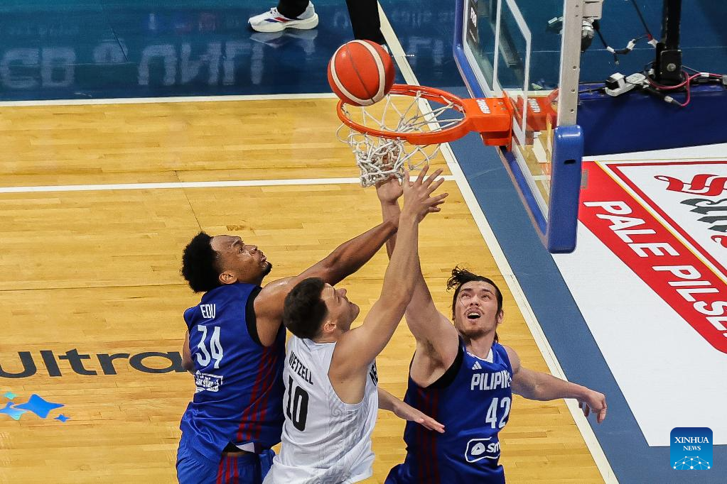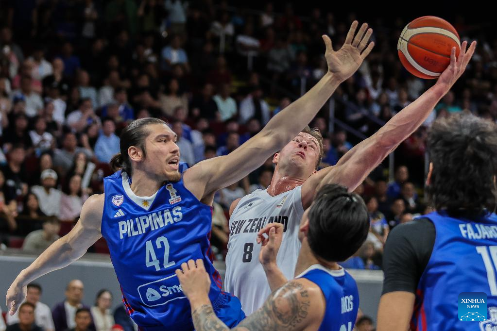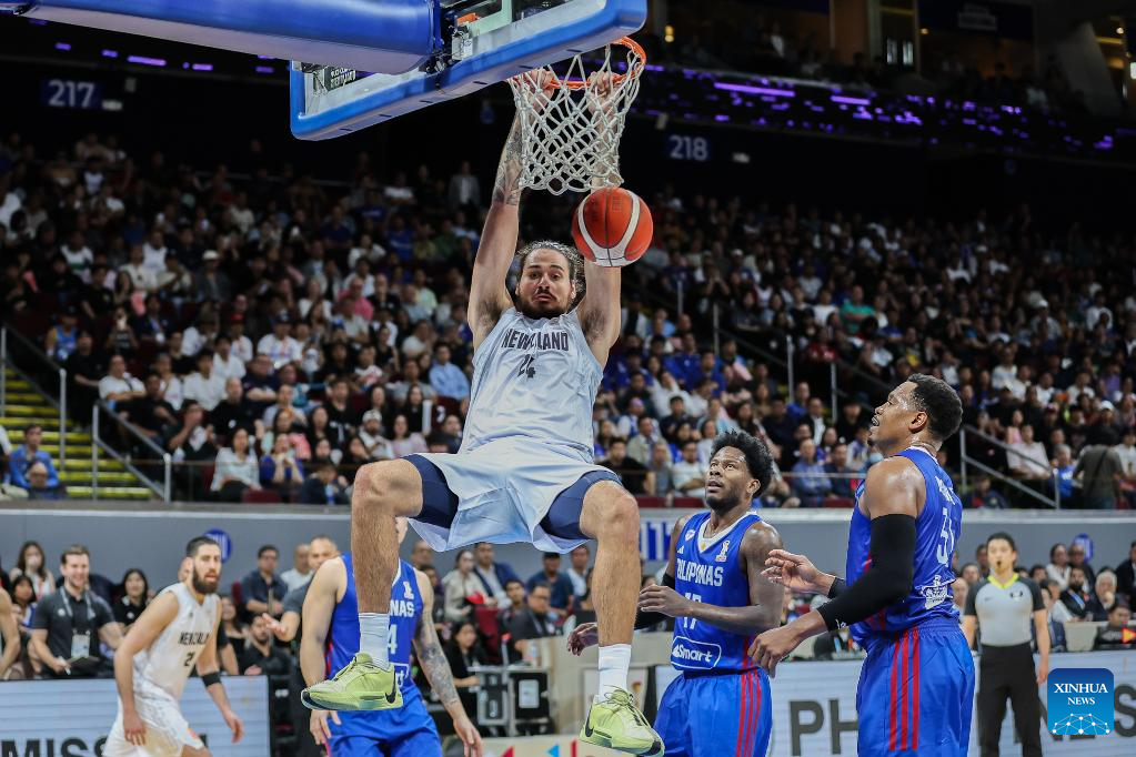 Yanni Wetzell (C) of New Zealand competes during the group A match between New Zealand and the Philippines at the FIBA World Cup Asian Qualifiers in Pasay City, the Philippines, on Feb. 26, 2026. (Xinhua/Rouelle Umali)