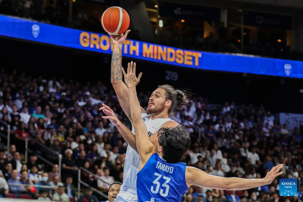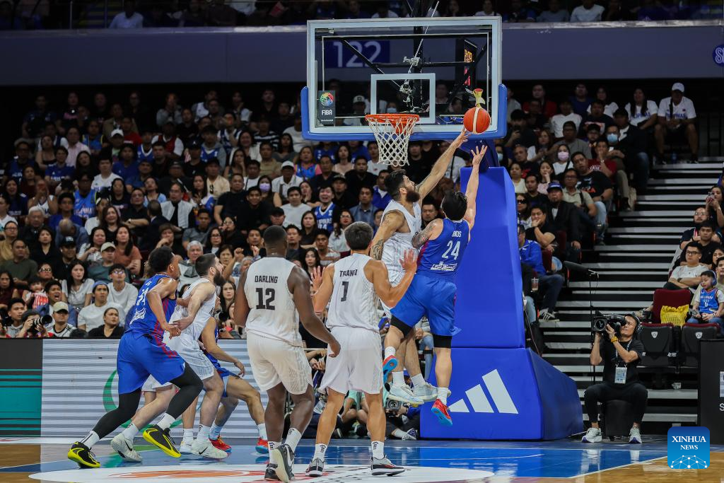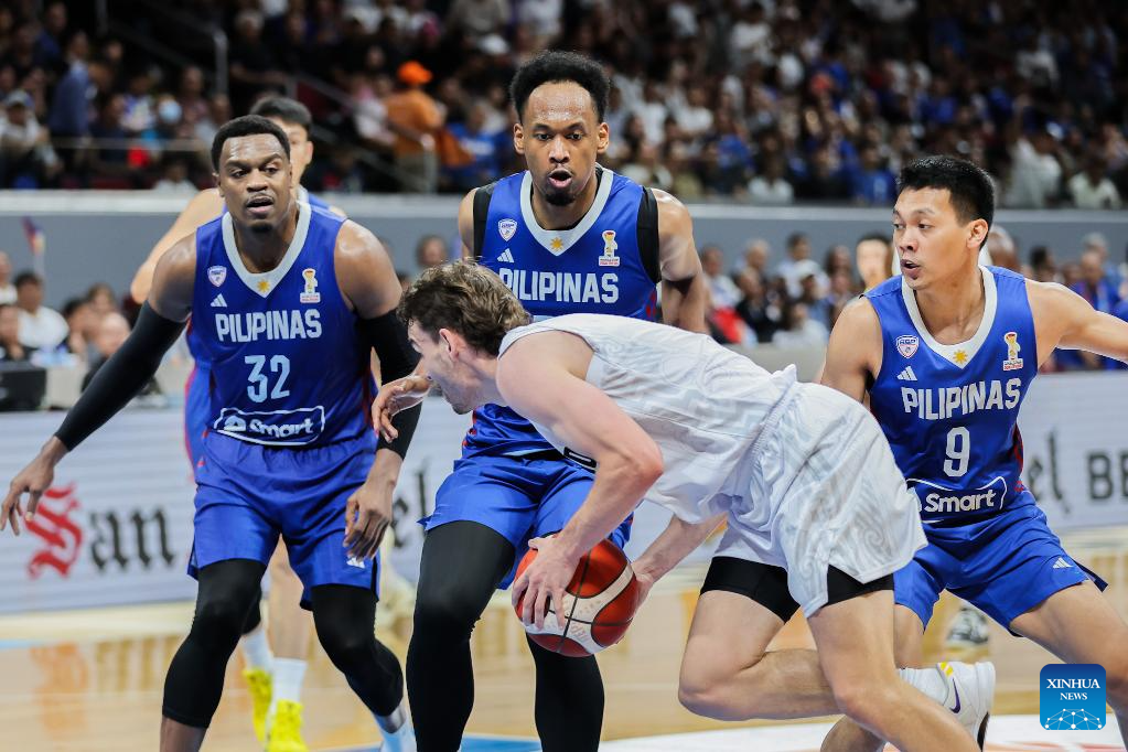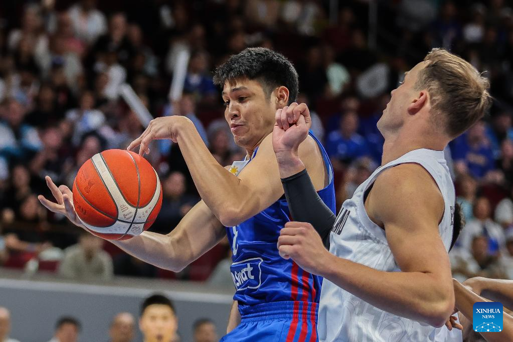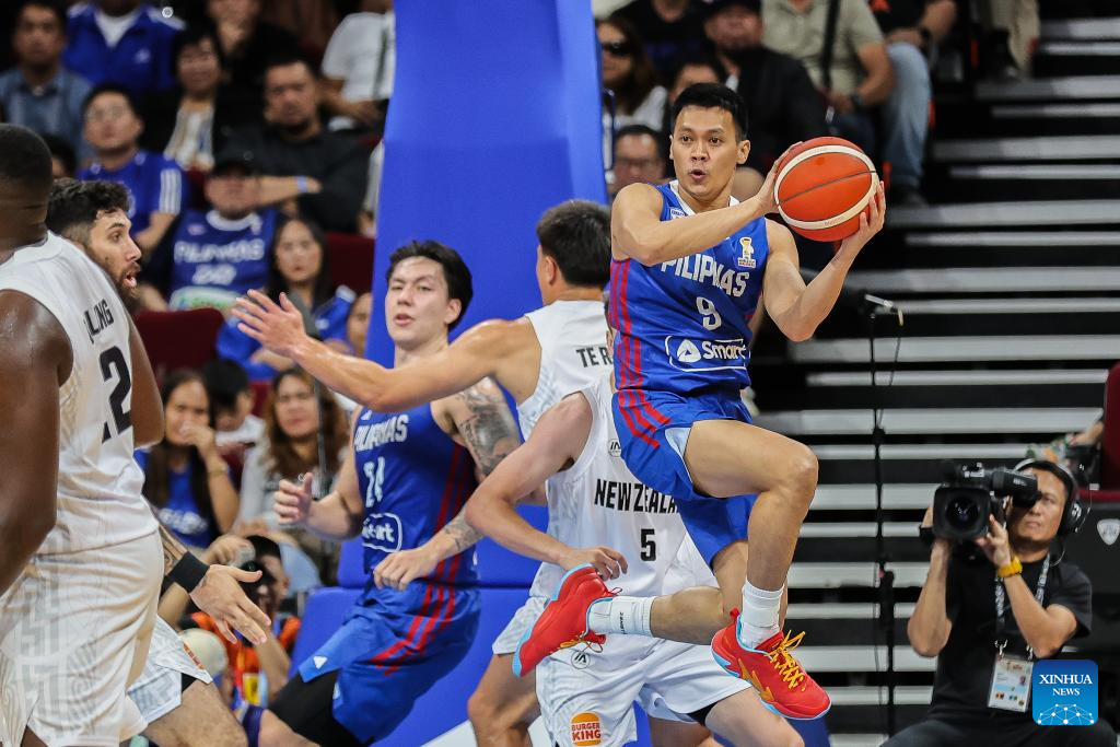 Calvin Oftana (L) of the Philippines competes during the group A match between New Zealand and the Philippines at the FIBA World Cup Asian Qualifiers in Pasay City, the Philippines, on Feb. 26, 2026. (Xinhua/Rouelle Umali)
