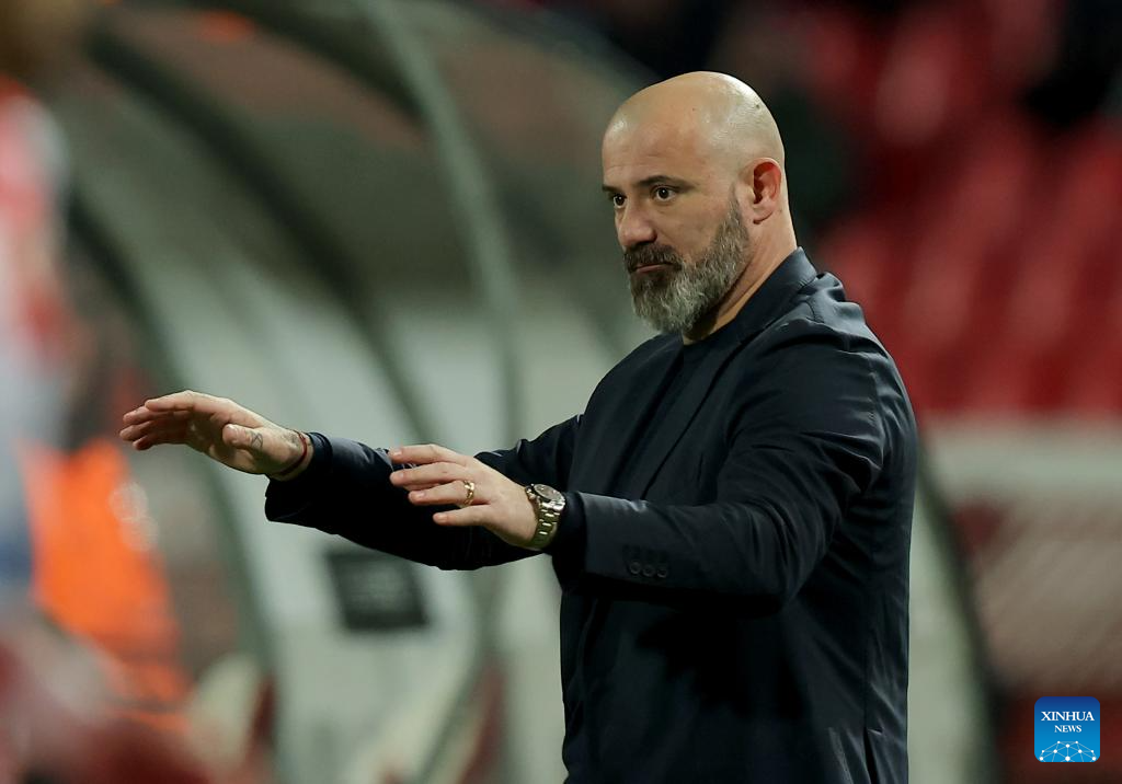 Crvena Zvezda's head coach Dejan Stankovic gestures during the UEFA Europa League play-offs 2nd leg match between Crvena Zvezda and Lille in Belgrade, Serbia, on Feb. 26, 2026. (Photo by Predrag Milosavljevic/Xinhua)
