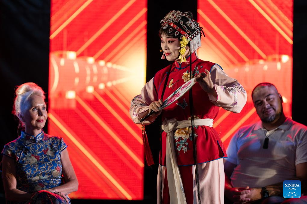 An artist stages a traditional Chinese opera during a Lantern Festival celebration in Auckland, New Zealand, Feb. 26, 2026. (Photo by Wu Jiaxiang/Xinhua)