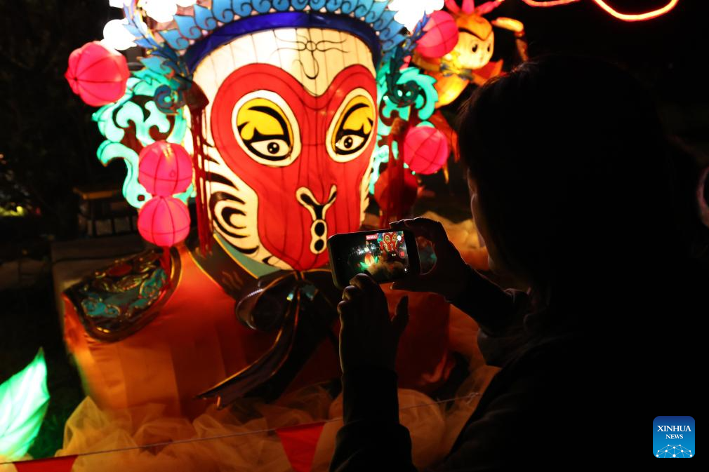 A visitor takes photos of an art installation during a Lantern Festival celebration in Auckland, New Zealand, Feb. 26, 2026. (Xinhua/Long Lei)