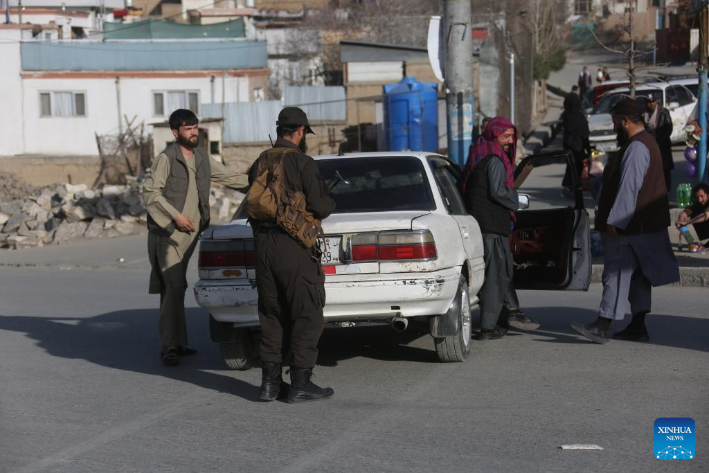 Security personnel inspect vehicles at a temporary checkpoint following airstrikes in Kabul, Afghanistan, Feb. 27, 2026. Zabihullah Mujahid, spokesperson for the Afghan government, posted on his X account early Friday that the Pakistani military conducted airstrikes in parts of Kabul, southern Kandahar, and eastern Paktia province. (Photo by Saifurahman Safi/Xinhua)
