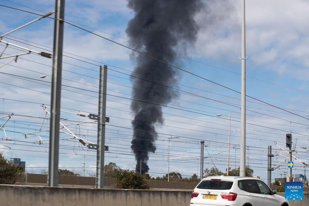 This photo taken on Feb. 28, 2026 shows thick smoke rising in Tel Aviv, Israel. (Xinhua/Chen Junqing)